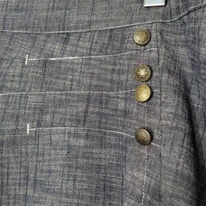 Gray A-Line Skirt Lace Underskirt Decorative Button Detail Zippered Closure Stretch Blend Cotton