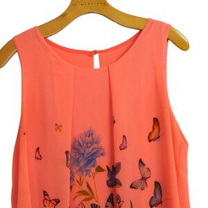 A-Lined Chiffon Sleeveless Floral & Butterfly Lined Tunic Print Dress Sz Medium