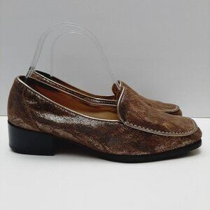 AMALFI Snake Pattern Square Toe Penny Loafer Chunky Block Heels Tan Gold Sz 7.5