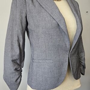 AMANDA + CHELSEA Classic Grey Blazer With Ruched Sleeves. Size 2