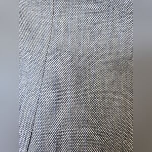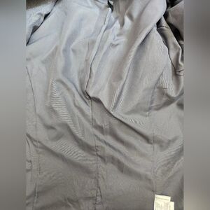 Beautiful lightweight blazer made from a polyester/linen blend. 3/4 Ruched sleeves. One front hook and clasp closure. Fully lined in a silky black. Pockets are still sewn from purchase.