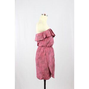 AMANDA UPRICHARD Red Snake Print Silk Crepe Strapless Ruffle Mini Dress, Size P
