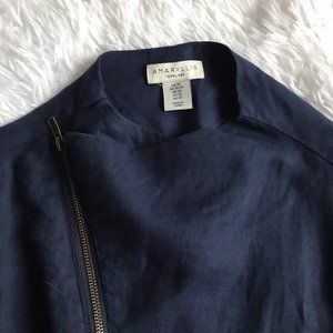 Very nice asymmetrical navy blue linen blazer type vest, longer in front than in the back