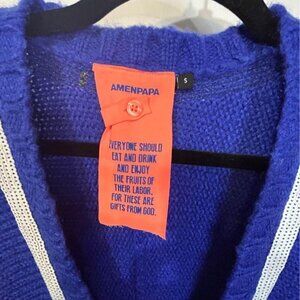 AMENPAPA cardigan. (Acrylic, nylon, wool, mohair). Size small. Oversized. Gorgeous blue/purple.