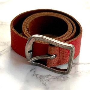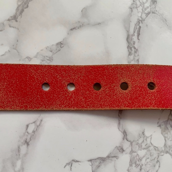 Rare vintage red antique distressed genuine leather belt. Made in Canada. Only worn few times, in excellent condition. Variation in the antique distressed colour is natural. Some marks on the back of the belt near the holes but does not affect the look or use of the belt.