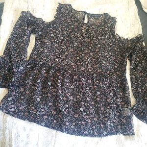 American Eagle floral flowy gauzy sheer cold shoulder long sleeves blouse top
