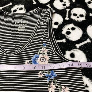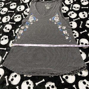AMERICAN EAGLE Black and white striped floral embroidery tank top ~ XS SMALL tee