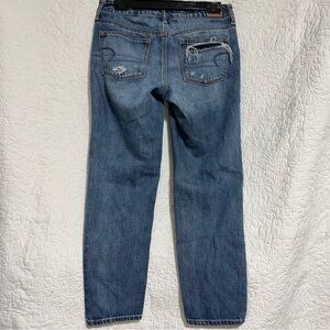Boy Crop style jeans by American Eagle. Super cute boyfriend cropped jeans with distressing, button fly detail.