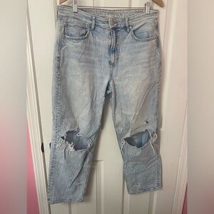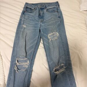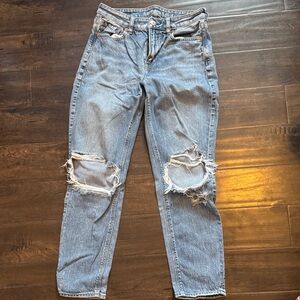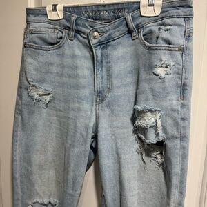 Boy Crop style jeans by American Eagle. Super cute boyfriend cropped jeans with distressing, button fly detail.