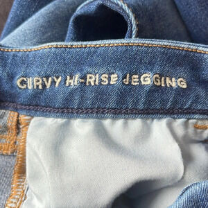 Women’s blue dark wash denim American Eagle “Curvy Hi-Rise Jegging” Jeans.