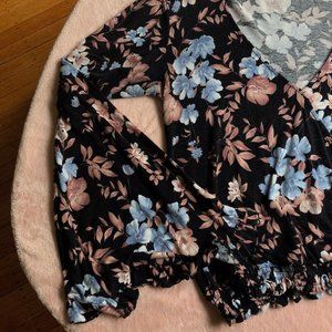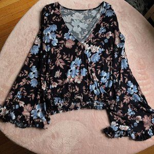 AMERICAN EAGLE Floral Bell Sleeve Faux Wrap Top