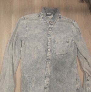 American eagle size small, denim faded acid washed mens classic shirt . Button down, worn once