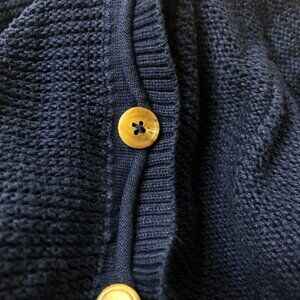 American Eagle long navy knit lightweight summer cardigan with 3/4 length sleeves. It has two relaxed pockets on the front and five tortoise colored buttons down the front bottom. Super cute with a pair of jeans and a white tank. You can wear it completely open and flowing or buttoned up. Love that it’s long and covers the bum. Light and super comfy. In excellent used condition with no flaws. Please see photos for details. Women’s size XSMALL.