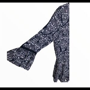 Black with hints of blush, Floral, Bell Style Sleeves with lace trim, Long Sleeve