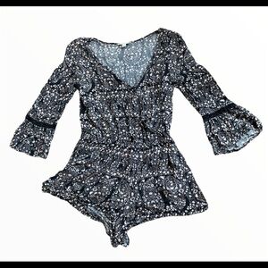 AMERICAN EAGLE OUTFITTERS Floral Surplice Faux Wrap Romper Black Size Small