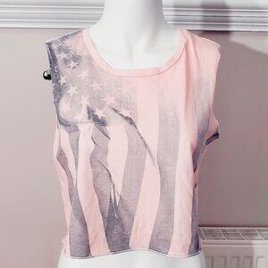 AMERICAN EAGLE OUTFITTERS- Semi- Cropped American flag Print Festival Muscle Tee