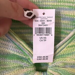 AMERICAN EAGLE OUTFITTERS | Y2K Green & Yellow Blouse with Bell Long Sleeves