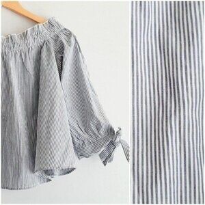 AMERICAN EAGLE Off Shoulder Smocked Blouse Pin Striped Top Sz M