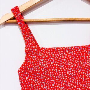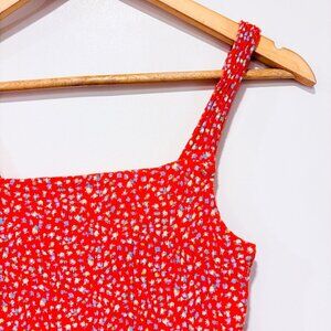 AMERICAN EAGLE – Orange Floral Smocked Crop Tank Top | Cotton Summer | Small *