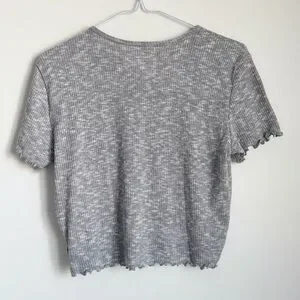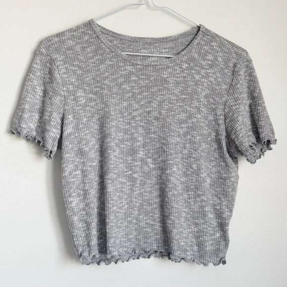 AMERICAN EAGLE | Ruffle Trim Ribbed Midi Tee