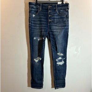 AMERICAN EAGLE Sz 14S High Rise Exposed Button Fly Distressed Jeans NEW