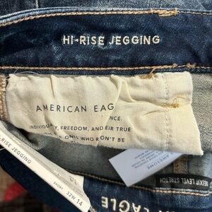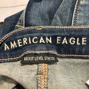 AMERICAN EAGLE Sz 14S High Rise Exposed Button Fly Distressed Jeans NEW. Unique and interesting cut. Very flattering.