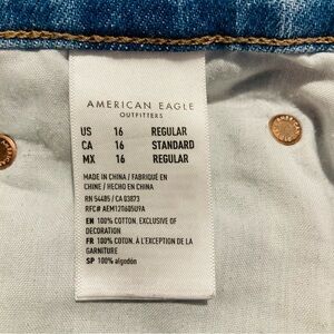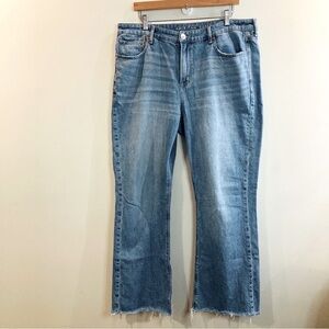 AMERICAN EAGLE Sz 16 90s Bootcut Light Wash Raw Hem Wiskering Boot Cut Jeans