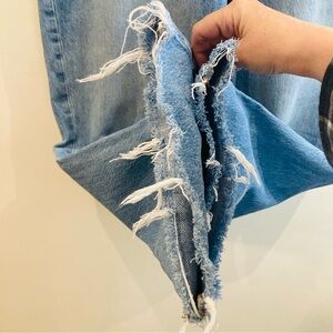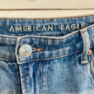 AMERICAN EAGLE Sz 16 90s Bootcut Light Wash Raw Hem Wiskering Boot Cut Jeans. Trendy and fun.
