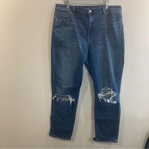 AMERICAN EAGLE Sz 16 Mom Style Busted Knee Dark Wash High Rise Chewed Hem Jeans. Super cool and trendy
