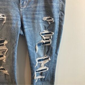 AMERICAN EAGLE Sz 20 Distressed Lined Light Wash Jeggings. Fun and frilly.