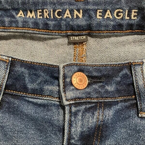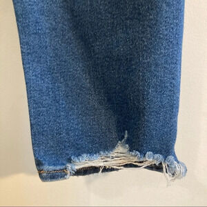 AMERICAN EAGLE Sz 6 Distressed Mid Wash Mom Jeans. High rise. Distresses back hem.