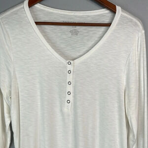 AMERICAN EAGLE White Soft & Sexy Slub Henley Shirt Snap Long Sleeves L