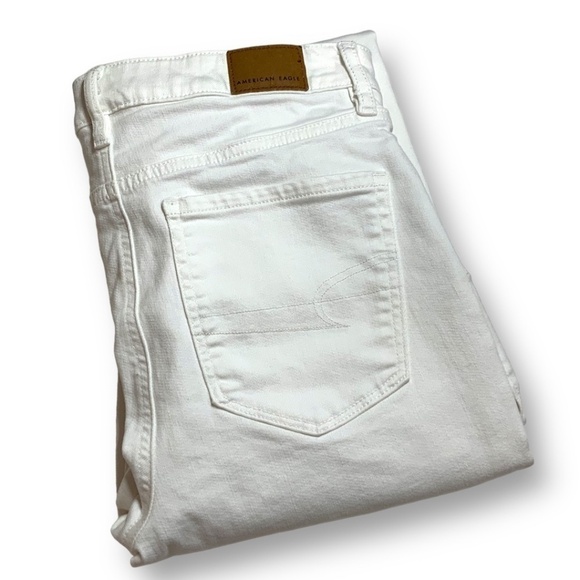 AMERICAN EAGLE White Super Hi-Rise Flare Split Hem Jeans US Sz 2 Regular