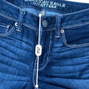 AMERICAN EAGLE Super Skinny Dark Wash Denim Contrast Stitch Jeans Size 0 Short