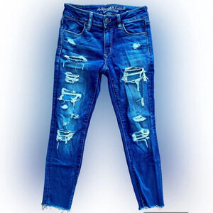 AMERICAN Eagle Dark Wash Jegging Crop Skinny Distressed Ripped Jeans Size 0