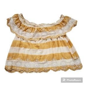AMERICAN Eagle Outfitters Off the Shoulder Eyelet Stripes Top