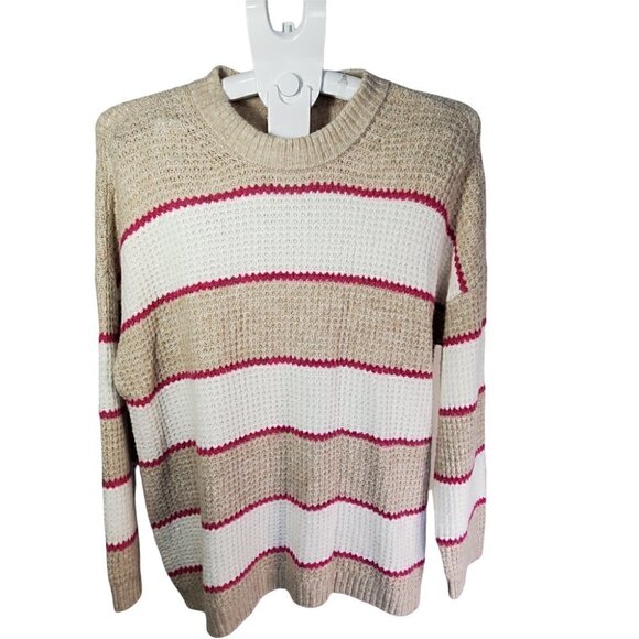 American Eagle knitted Fit Tan-White Striped Crew Neck Pullover Sweater. Size S