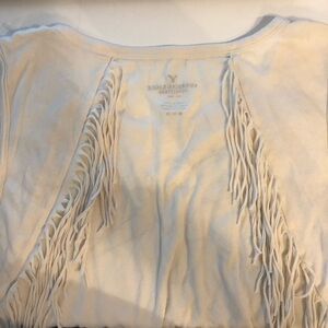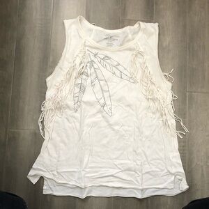 American Eagle sleeveless top with fringe detail on the front and back.
