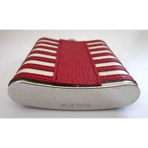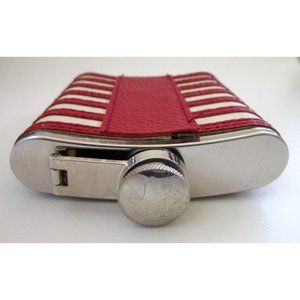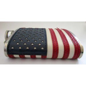 AMERICAN FLAG FLASK USA 6oz Patriotic Stainless Steel Screw Top Stitched Leather