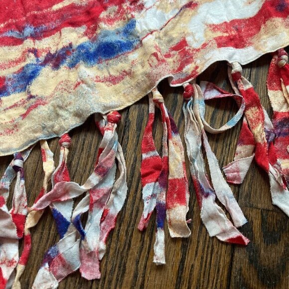 This t-shsirt tank has 4th of July vibe in it wth the fringe giving it a cowboyish look.