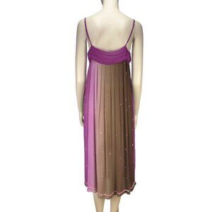 AMERICAN VINTAGE PARIS Silk Fairy Whimsical Flowy Pink Sheer Sequin Midi Dress42