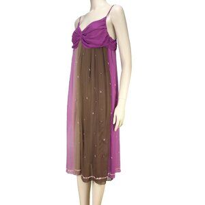 AMERICAN VINTAGE Designer PARIS 100% Silk Fairy Flowy Pink Sequin Midi Dress 42