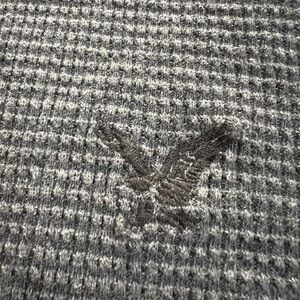 American Eagle AE Outfitters long sleeved young man teen shirt. Good preloved used condition. Smoke-free and cat-free home. Teen outgrew it. Time for it to be enjoyed by the next owner! 100% cotton. Generous fit. Heavier material. Machine wash cold. Tumble dry low. Waffle knit. Blue and grey large horizontal stripes.