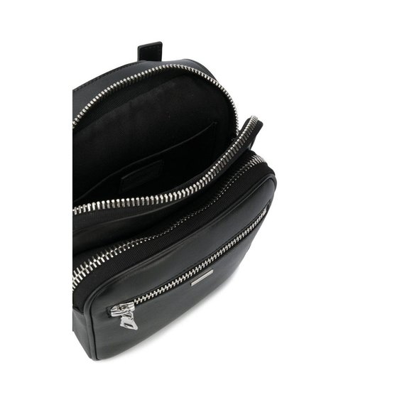 Black leather logo plaque hip pouch from AMIRI featuring a clasp fastening, silver-tone hardware, a front zip fastening, a top zip fastening and a logo plaque.
