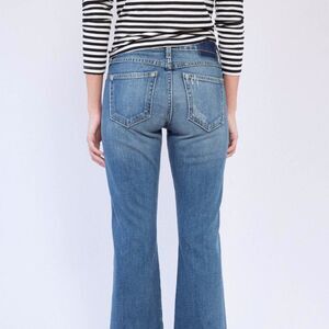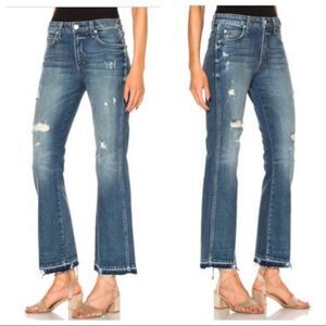 AMO Bex Jeans Color: Dreamer Destroy 98% cotton, 2% elastane. Made in USA. Machine wash. Whiskering on front along with pockets. Destroyed fabric detail throughout. Frayed hem. new without tag measurement waist 38cm, hip 29cm, length 97cm