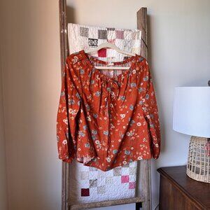 A.N.A Ana Floral Blouse. Balloon sleeves. Rustic orange. 100% Cotton.