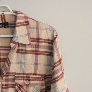 A.N.A Women's Sz XL Plaid Flannel V-Neck Button Up Cotton Pocket Long Sleeve Top