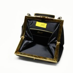 ANDÉ Vintage Black Satin Evening Bag Multi-Tone Chain Strap