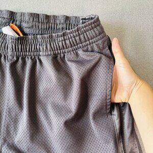 AND1 Mens L Shiny Gray Clutch Shooter Performance Basketball Shorts Drawstring