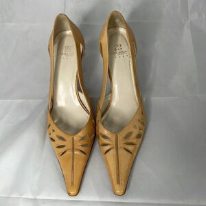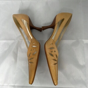 ANDREA COLLECTION Pointed Toe Kitten Heel Pumps Nude Tan Leather Cut Outs 6.5